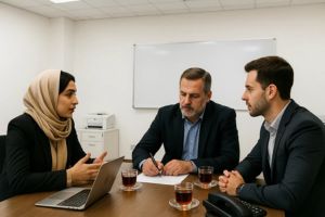 ![]() گام دوم: ارائه طرح همکاری در این جلسه، طرحی مشتمل بر چارچوب اقدامات مورد نیاز برای محقق کردن اهداف مورد نظر و چارچوب همکاری ارائه و نهایی میگردد. |
